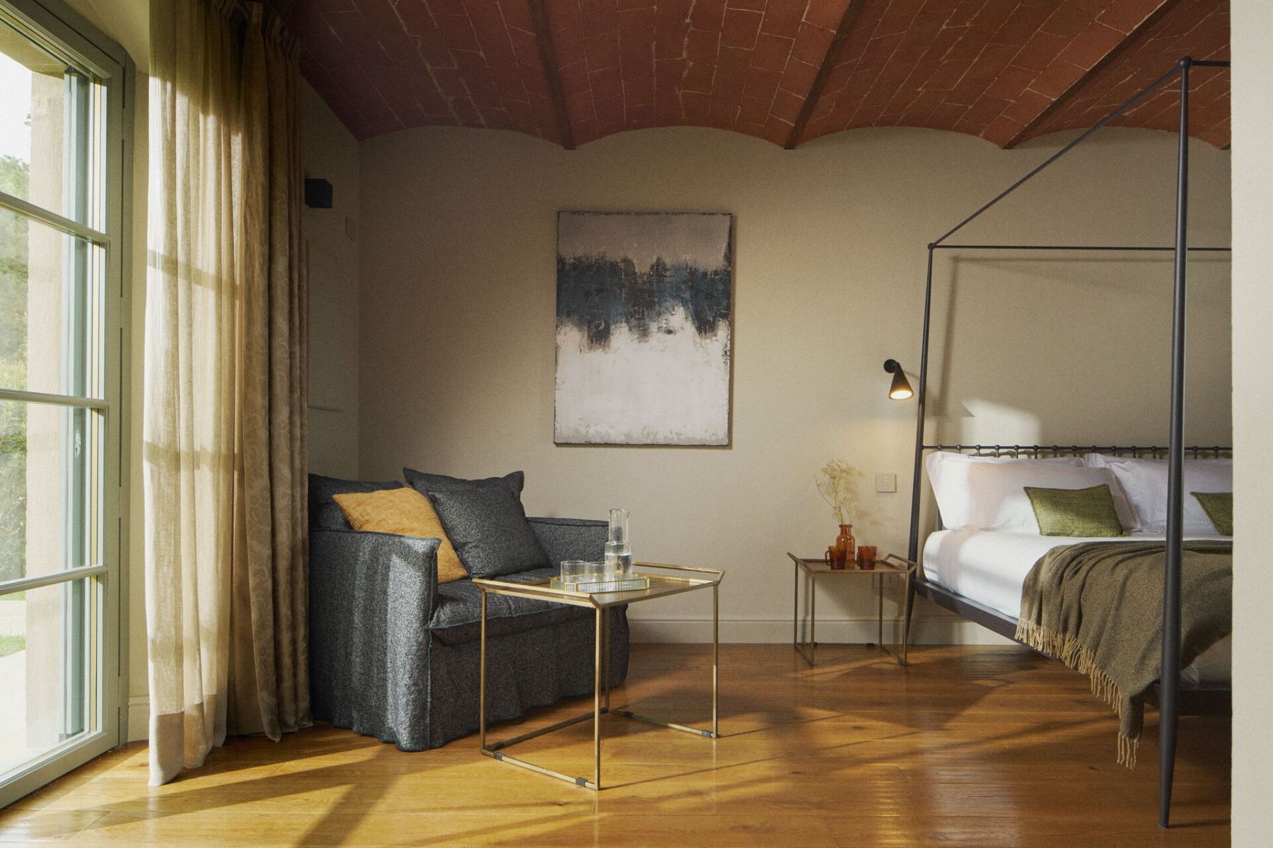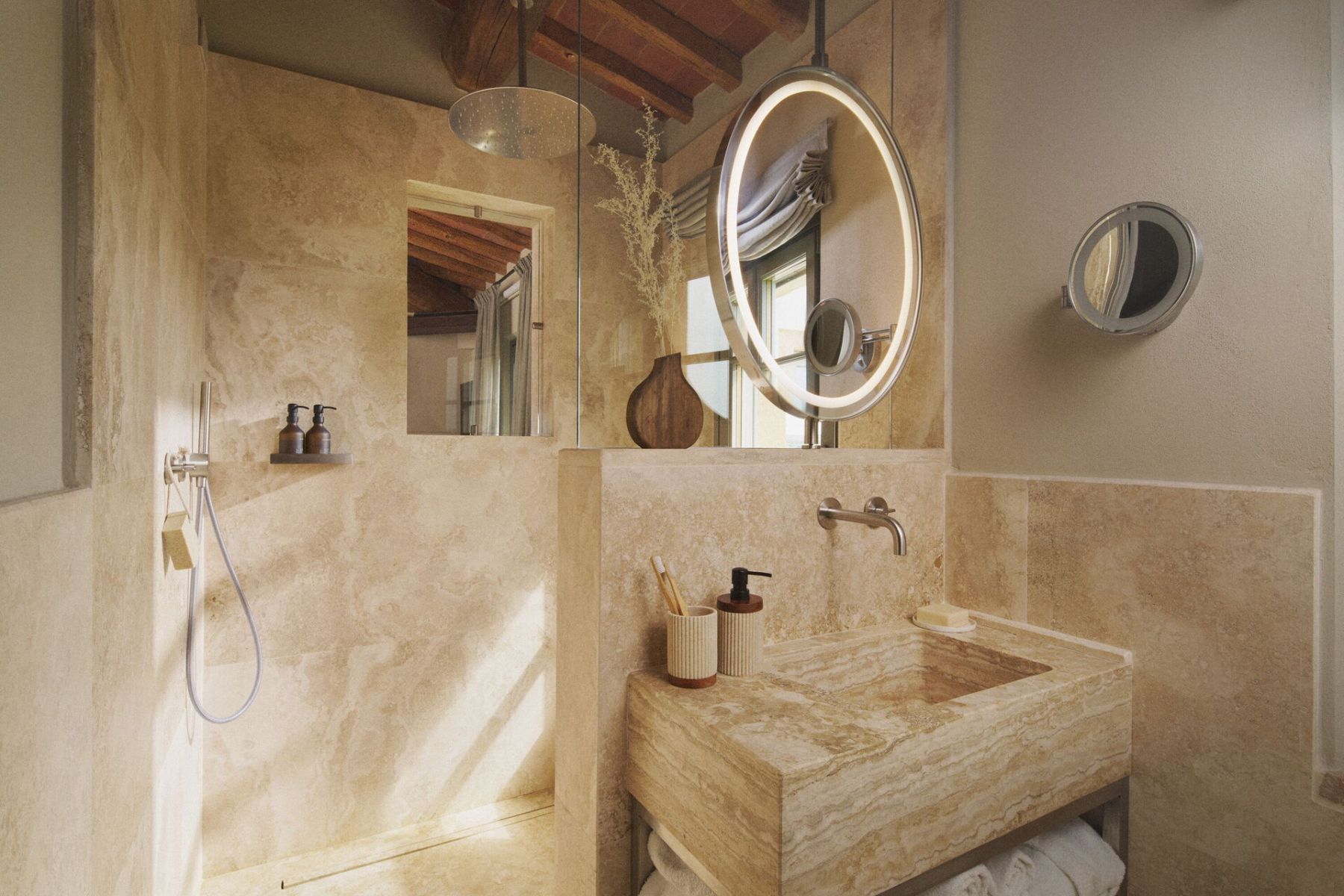 Outside, a spacious well-maintained garden offers several relaxing areas, perfect for outdoor dining, organizing dinners under the stars, or simply enjoying the colors of the hills at sunset. Every corner of the garden is designed to ensure privacy and tranquility, with shaded and sunny areas according to guests’ preferences.
