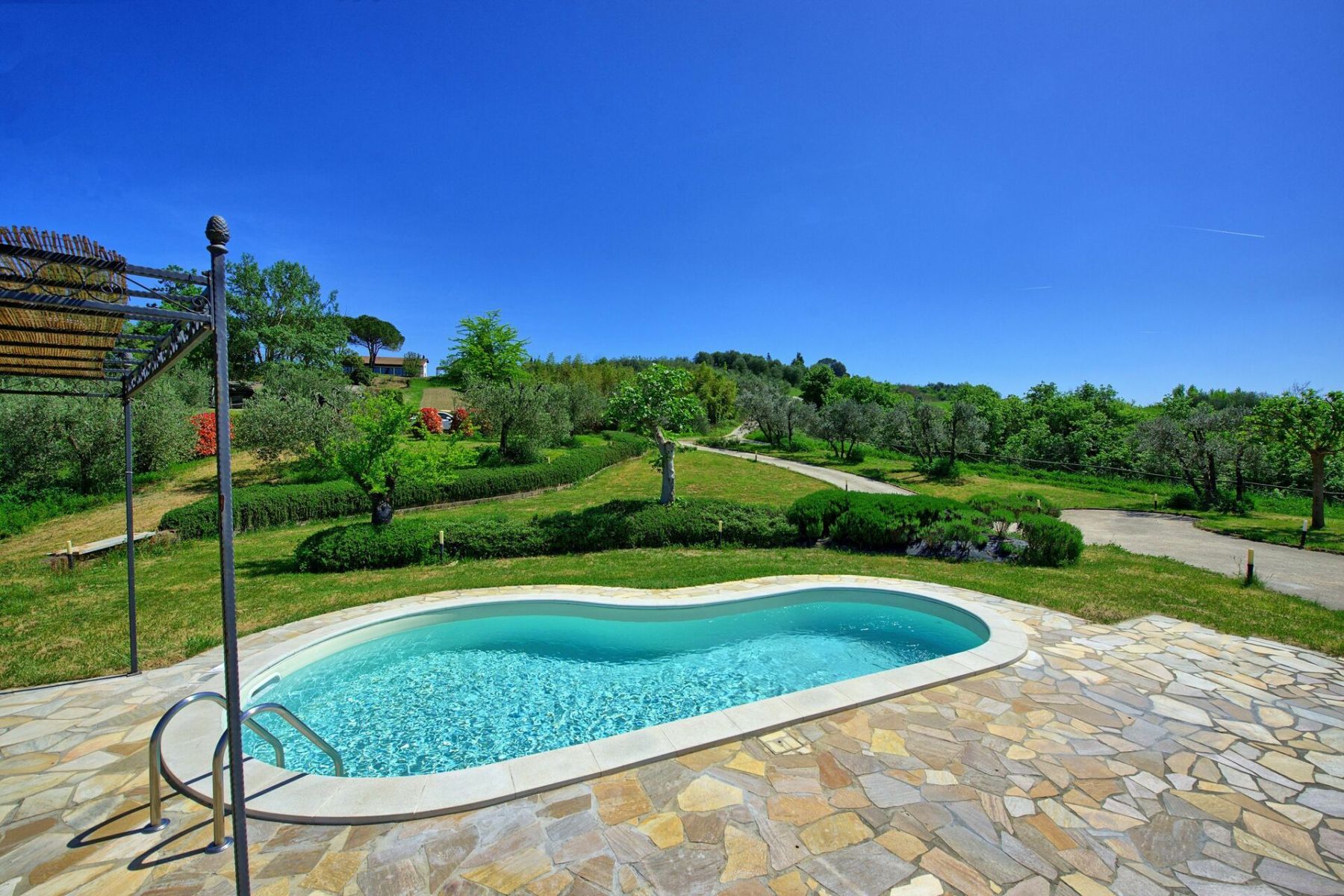 Uno dei punti di forza di Villa Roberto è senza dubbio la sua piscina privata a forma di fagiolo (7 x 3 metri, profondità 1,20 m), riservata all’uso esclusivo degli ospiti e aperta dal 1° aprile al 30 ottobre. La zona piscina è completamente attrezzata con: